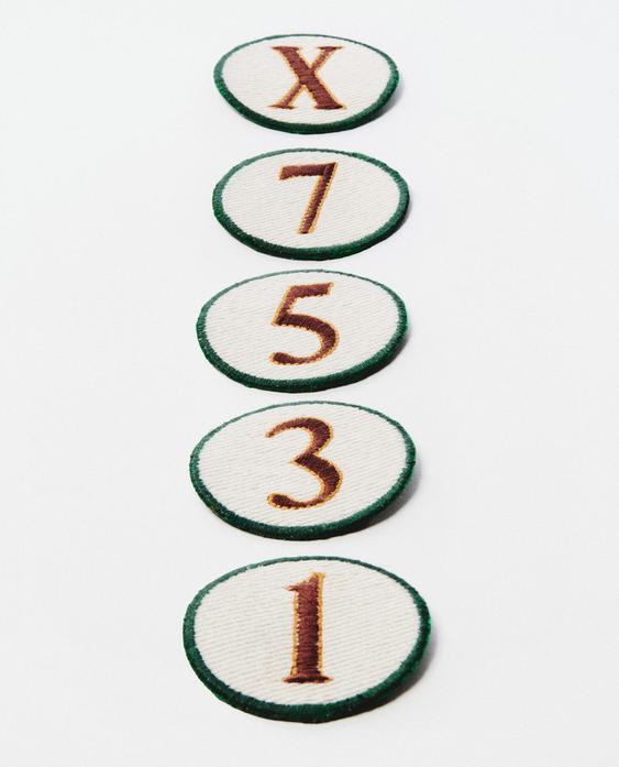 Parche termoadhesivo con diseño numérico. Tiene forma circular con borde en contraste y acabado bordado.