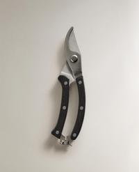 Tijera de jardín elaborada en acero con mango en madera de haya. Las hojas son cortas, curvas y ligeramente puntiagudas, diseñadas para facilitar cortes precisos. Incluye sistema de cierre de seguridad para un almacenamiento seguro.