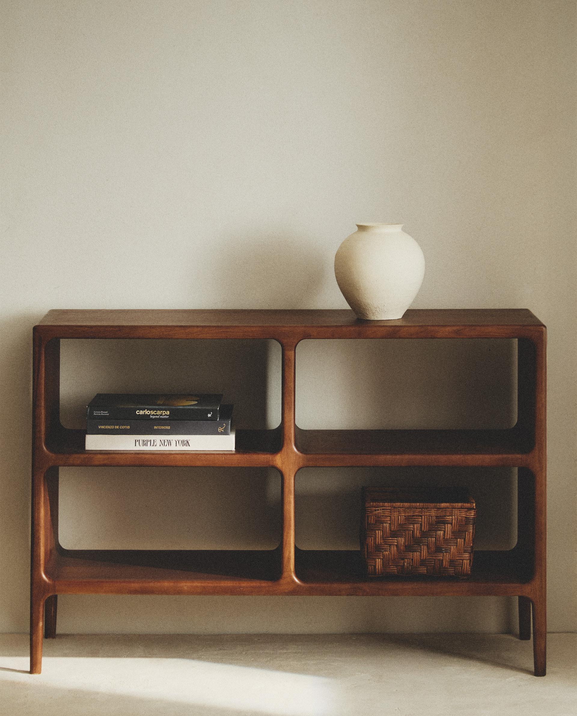 Natural wood, matte-finish metal, or combinations of both materials give these pieces an elegant and discreet presence. Zara Home’s shelves are designed to integrate into different decorative styles, from contemporary interiors to rustic or minimalist environments. Their aesthetic neutrality allows them to be easily combined with other elements of the Zara Home furniture universe.