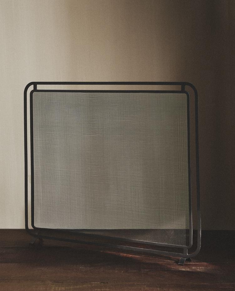Ekran mbrojtës nga shkëndijat prej hekuri me një strukturë drejtkëndëshe dhe këmbë mbështetëse. Mbron nga zjarri dhe shkëndijat.
