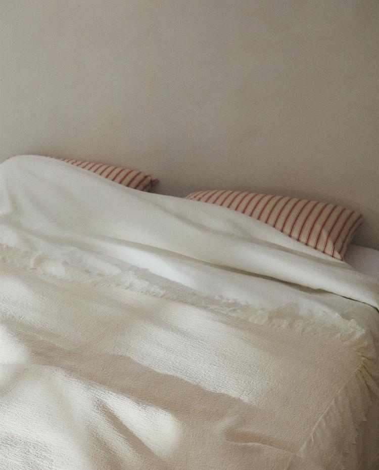 MBULESA KREVATI PAMBUK ME TEKSTURË DHE FRUDA TË QËNDISURA | Zara Home Shqipëria, Albania