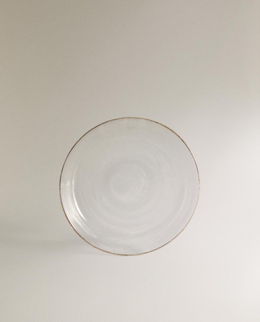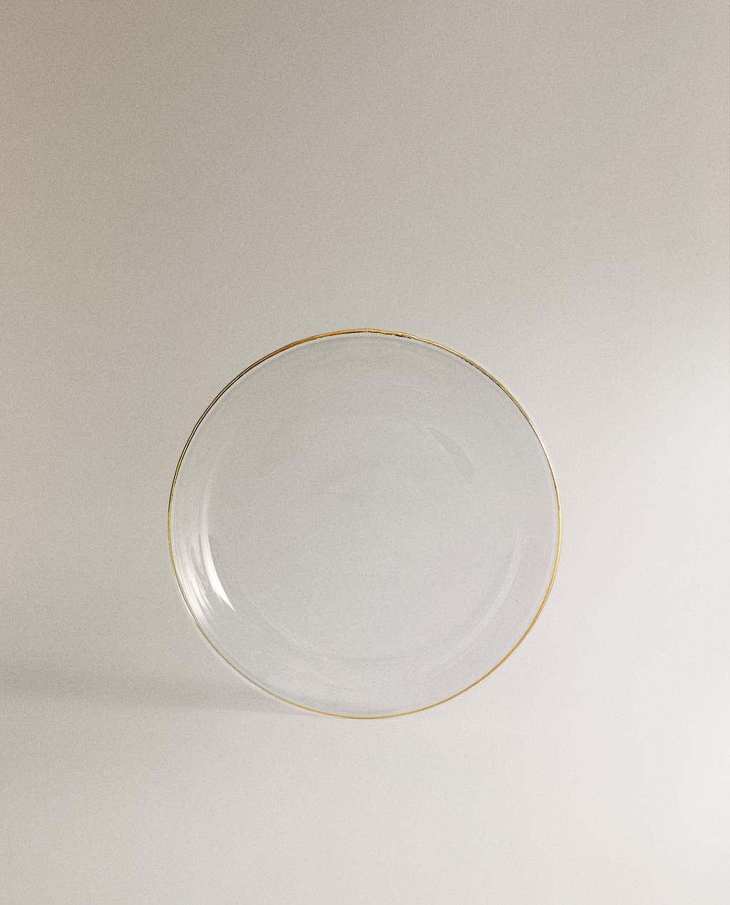 Pjatë qelqi anësore borosilikati me bordurë me kontrast.