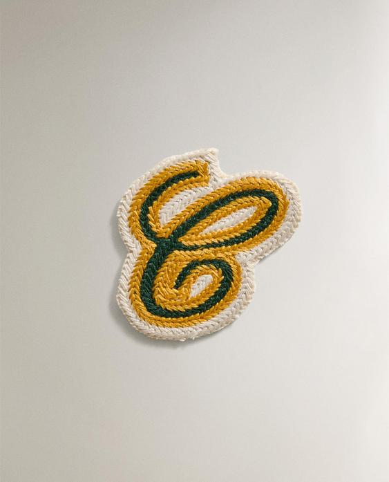 Plastër termo-ngjitës i bërë nga pambuku. Dizajn me shkronjën C me shkrim dore të qëndisur në ngjyrë kontrasti dhe e përfunduar me buzë të qepura.