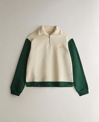 Bluzë e punuar kryesisht me pambuk. Ka jakë me zinxhir dhe mëngë të gjata. Dizajn i thjeshtë me kontrast ngjyrash në mëngë dhe në fund. Detaje qëndisjeje në gjoks me tekstin “Golf Club” dhe fund të ngushtuar në mansheta dhe në fund.
