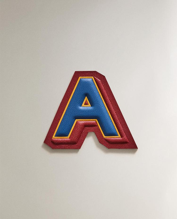 Aufbügelbarer Patch aus Leder mit dem Buchstaben A in Kontrastfarben.