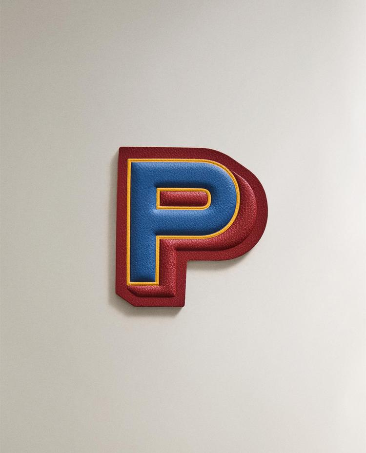 Aufbügel-Patch aus Leder mit kontrastierendem Buchstaben „P“.