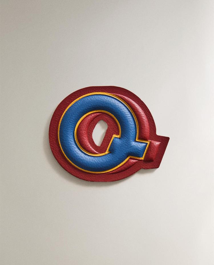 Aufbügel-Patch aus Leder mit dem Buchstaben Q in Kontrastfarben.