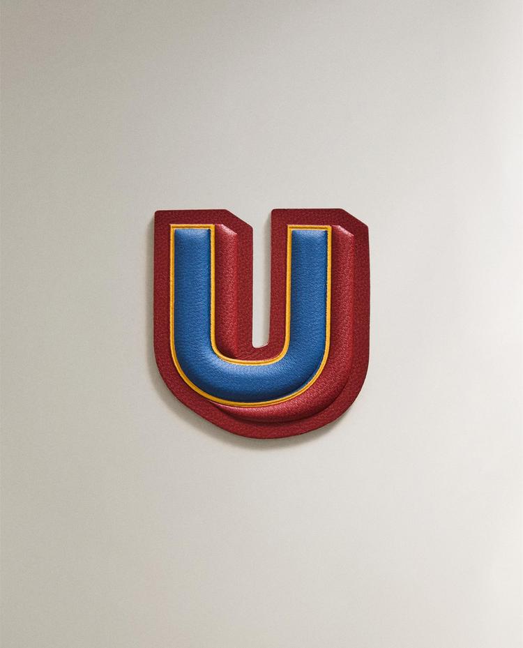 Aufbügel-Patch aus Leder mit dem Buchstaben U in Kontrastfarben.