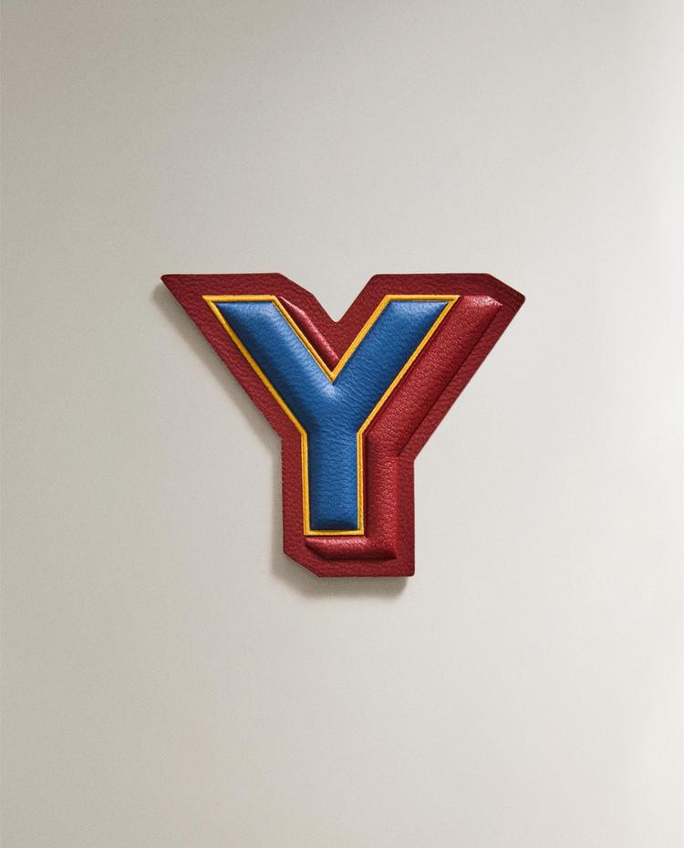 Bügel-Patch aus Leder mit dem Buchstaben Y in Kontrastfarben.