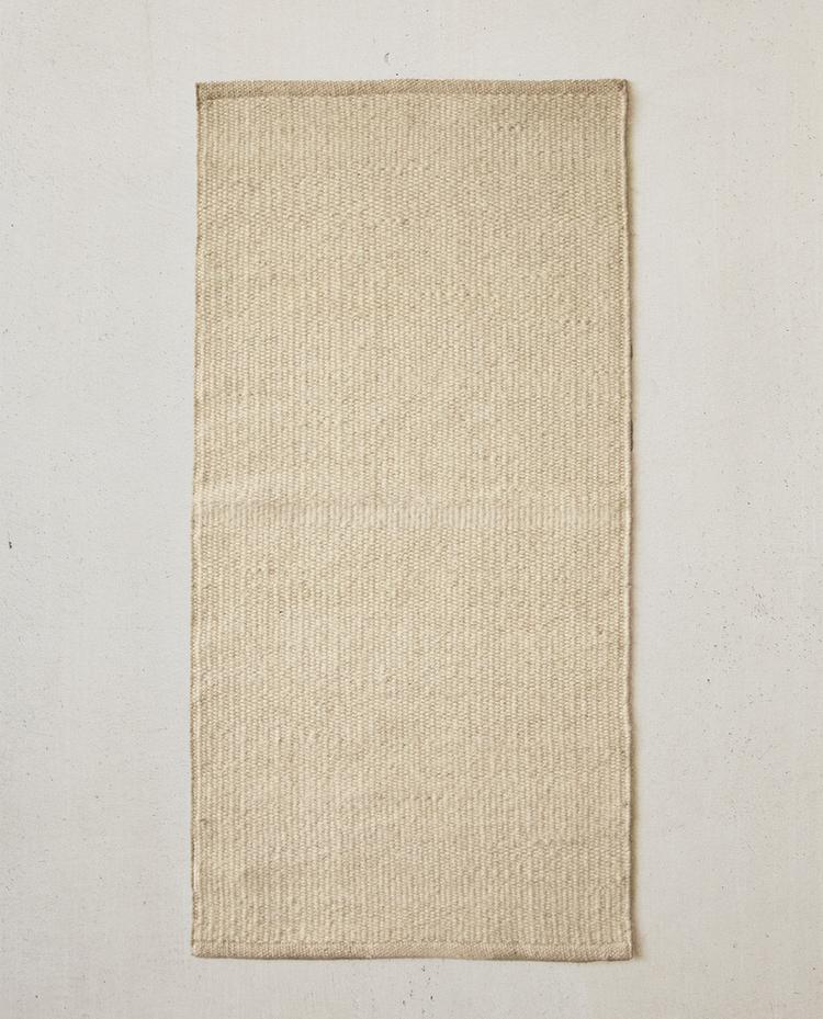 Teppich aus Schurwolle in hellem Ton. Erhältlich in Läufergröße.