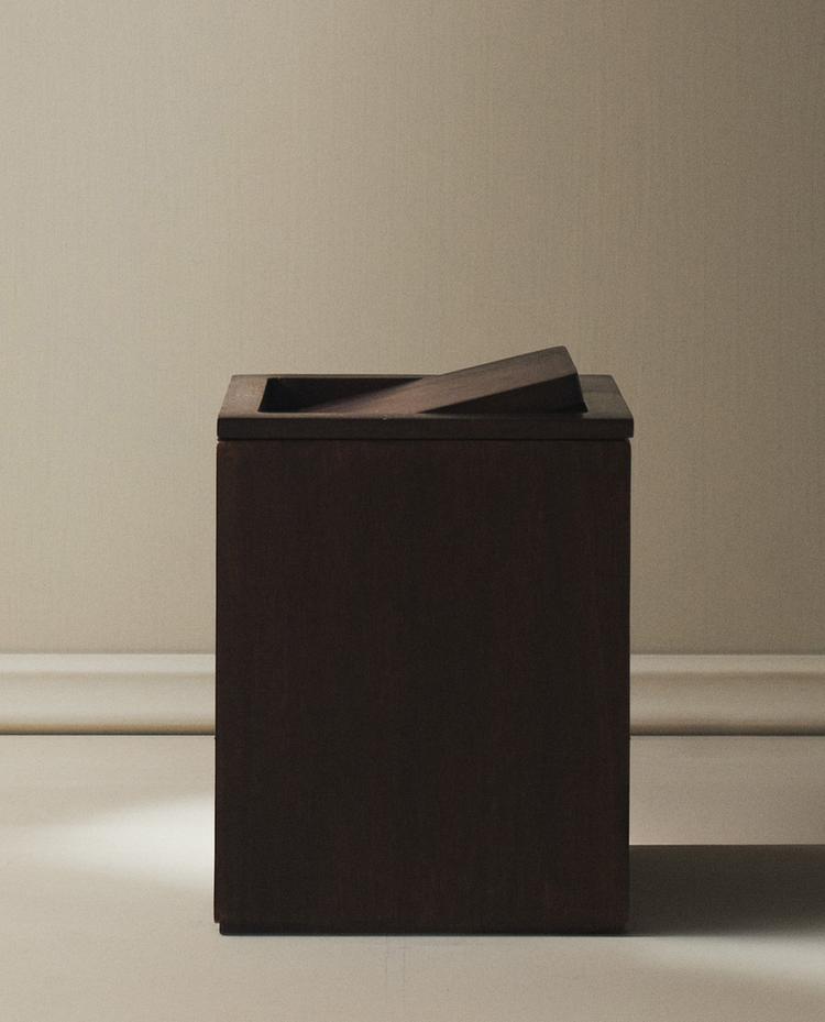 QUADRATISCHER BADEZIMMER-PAPIERKORB AUS DUNKELEM HOLZ