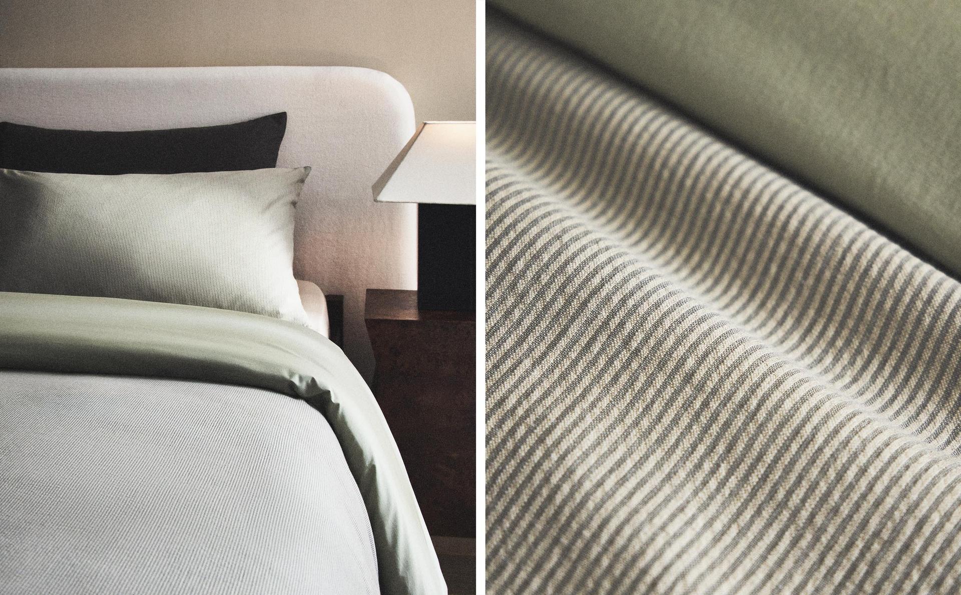 Zara Home bietet eine Auswahl an Bettbezügen aus hochwertigen Materialien wie Leinen und Baumwolle, die in verschiedenen Ausführungen erhältlich sind: Perkal, Satin, Jersey oder Flanell. Unter ihnen stechen unsere Baumwollbezüge mit 300 Fäden aus Perkal hervor, die sich weich anfühlen und eine hohe Strapazierfähigkeit aufweisen. Unsere Satinbezüge mit 300 oder 500 Fäden, die sich durch einen dezenten Glanz und eine seidige Struktur auszeichnen, sind ideal für alle, die einen raffinierten und langlebigen Stoff suchen. Mit diesen Vorschlägen werden unterschiedliche sensorische Präferenzen angesprochen, so dass Sie je nach Jahreszeit zwischen leichteren oder umhüllenderen Texturen wählen können.