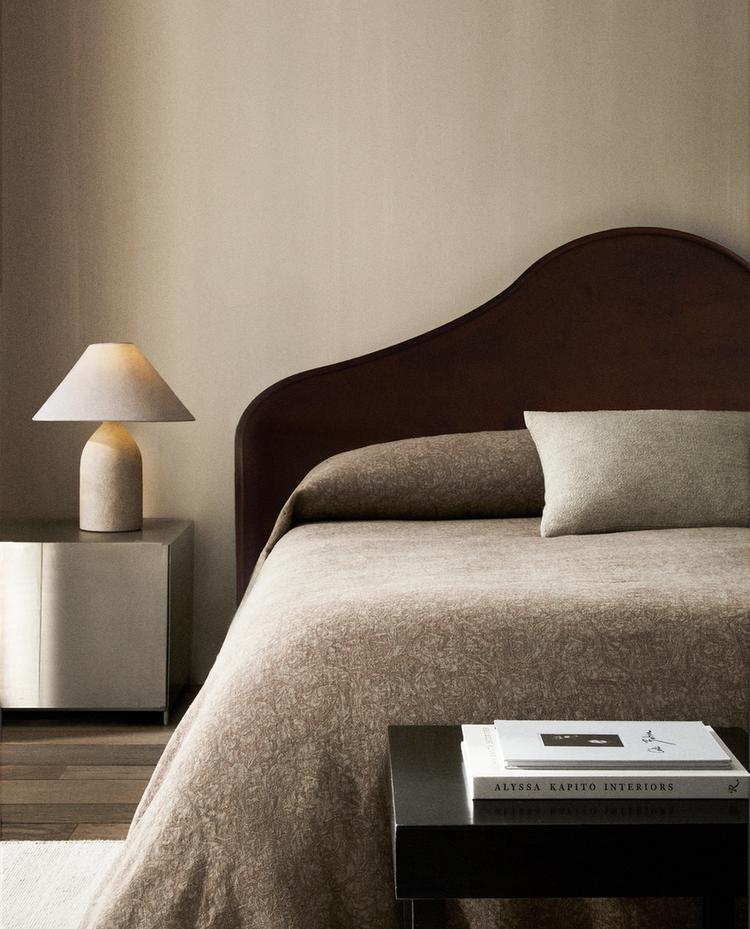 Tagesdecke aus Leinen in Braun mit floralem Jacquard-Design.