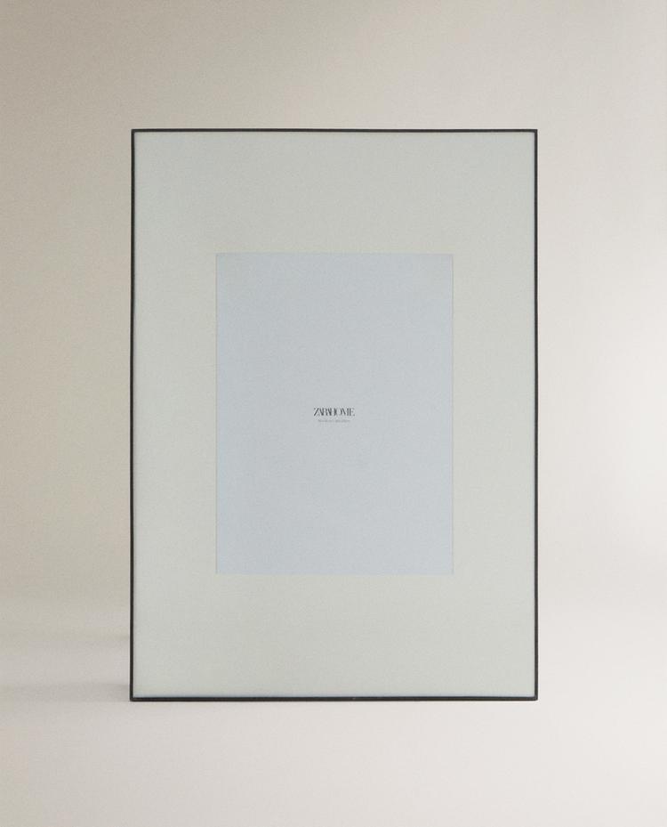 Fotolijst met een smalle metalen rand en passe-partout.