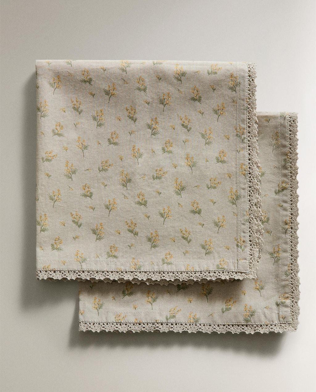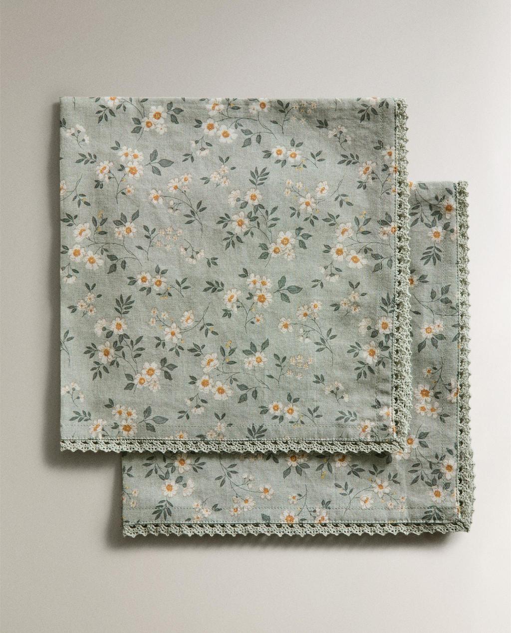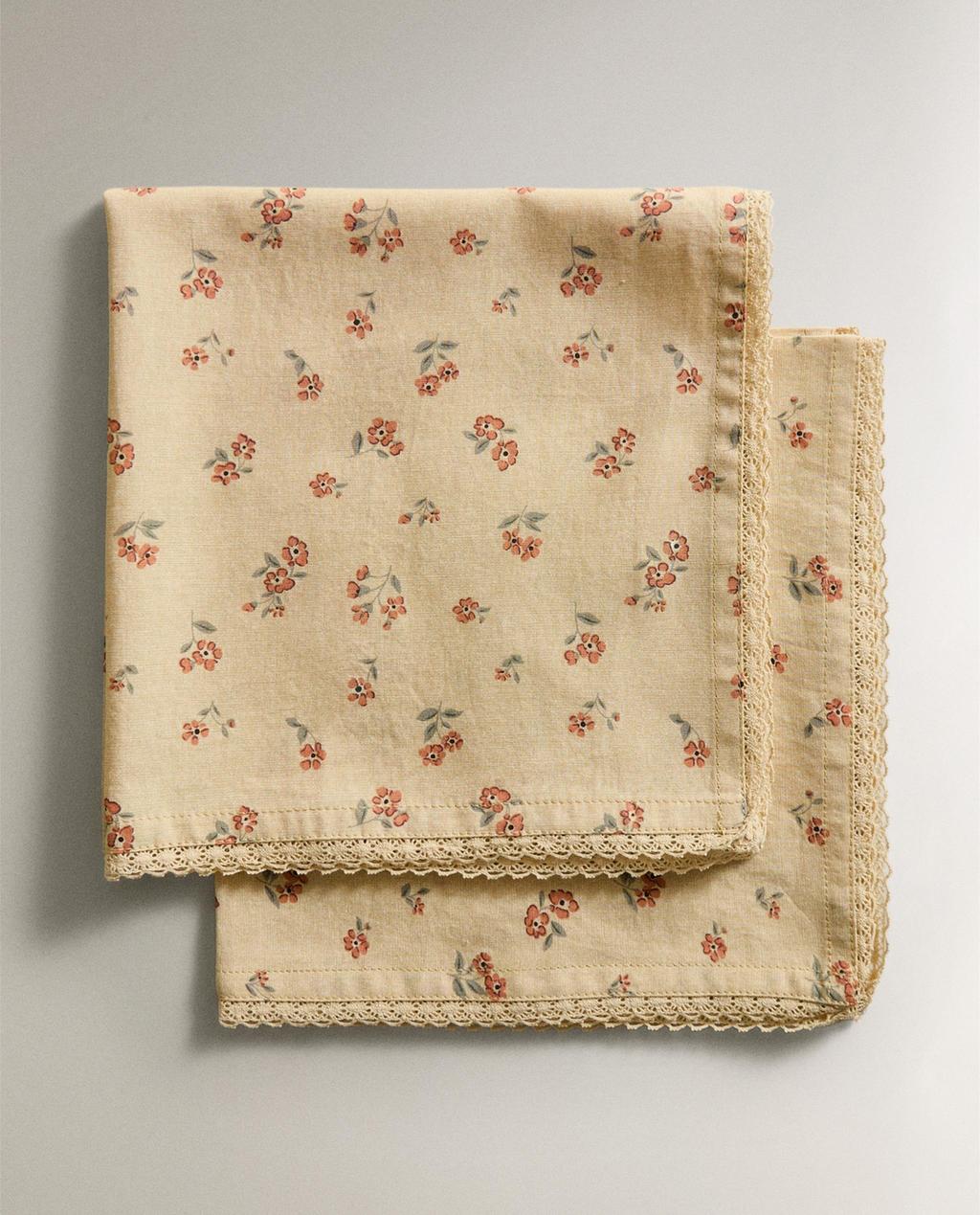 SERVETTEN MET VELDBLOEMEN EN KANT (2-PACK) | Zara Home België / Belgique