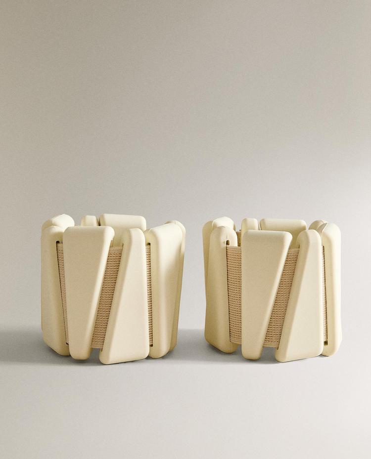 Adjustable ankle weights with integrated weight, made of silicone and featuring hook-and-loop closure. Designed as an accessory to increase the intensity of your workout. The pack includes 2 units, each weighing 0.5 kg/1 lb. It also includes a cotton bag with adjustable drawstring closure for easy transport and storage.