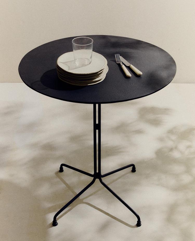 Кръгла маса с метална конструкция и изчистен дизайн. С матово черно покритие, идеална за закрито и открито.