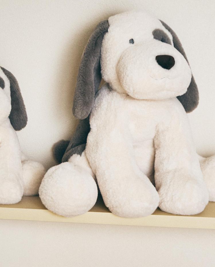 Малка детска плюшена играчка с форма на куче, с мека повърхност.