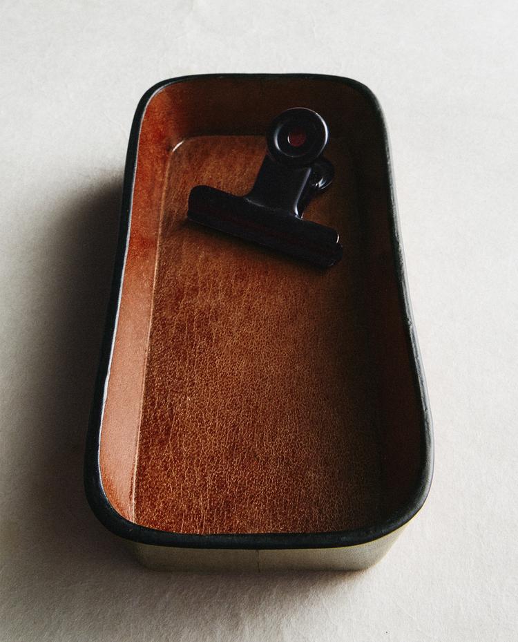 Кожен поднос за дребни вещи с издължена правоъгълна форма и със заоблени ръбове.