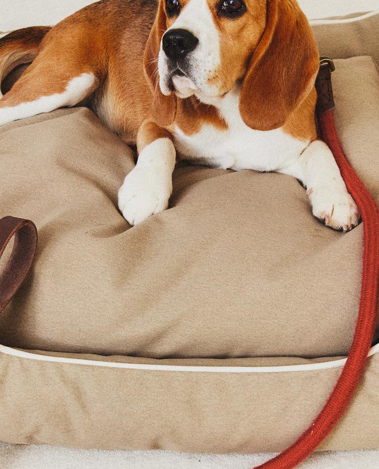 Легло за домашни любимци със съответстваща възглавница, изработено от памучна смес и с кант.