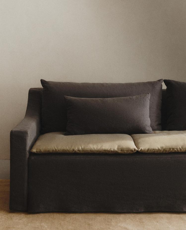 Подплатен ленен топматрак с едноцветен дизайн и закопчаване с копчета.