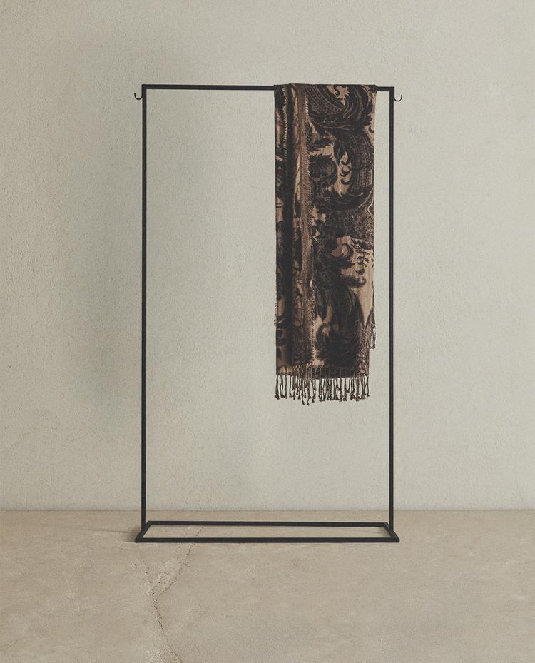 Закачалка за дрехи с метална конструкция и странични кукички.