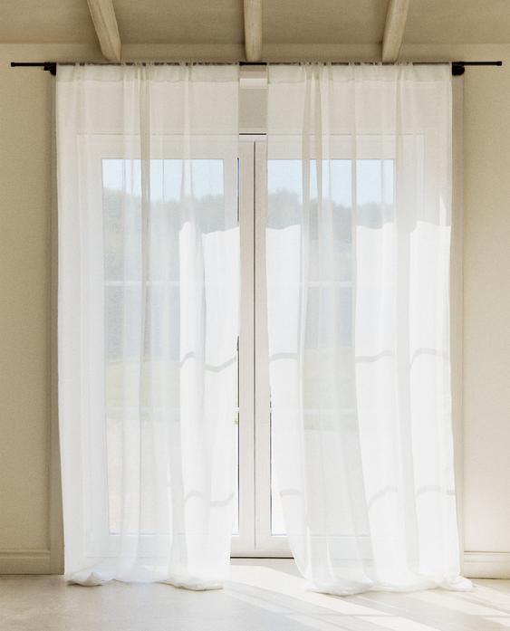Едноцветно полупрозрачно перде с много ниска степен на непрозрачност за мека и разсеяна светлина. С перделък. Идеална за онези, които искат да добавят светлина и деликатен стил към своите помещения.
