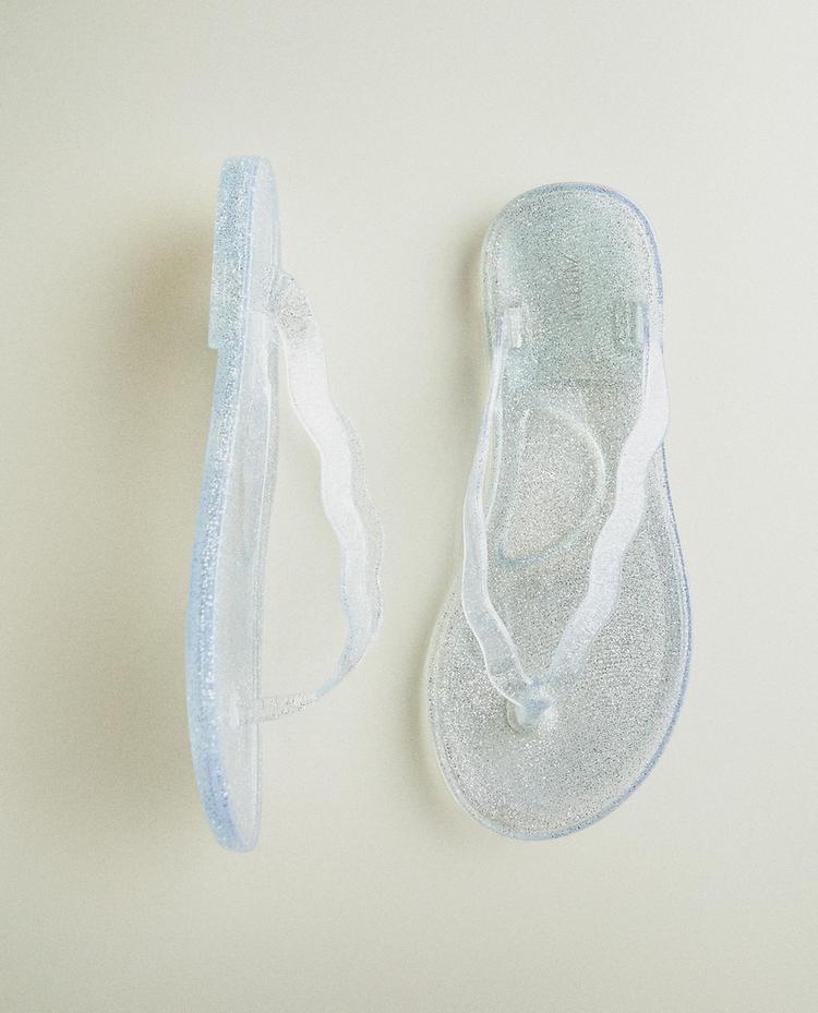 صنادل للأطفال مطاطي بلمسة غليتر. مقسم أصابع.