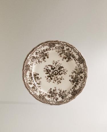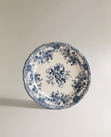 طبق للتحلية من الخزف مزين بالأزهار | Zara Home Bahrain