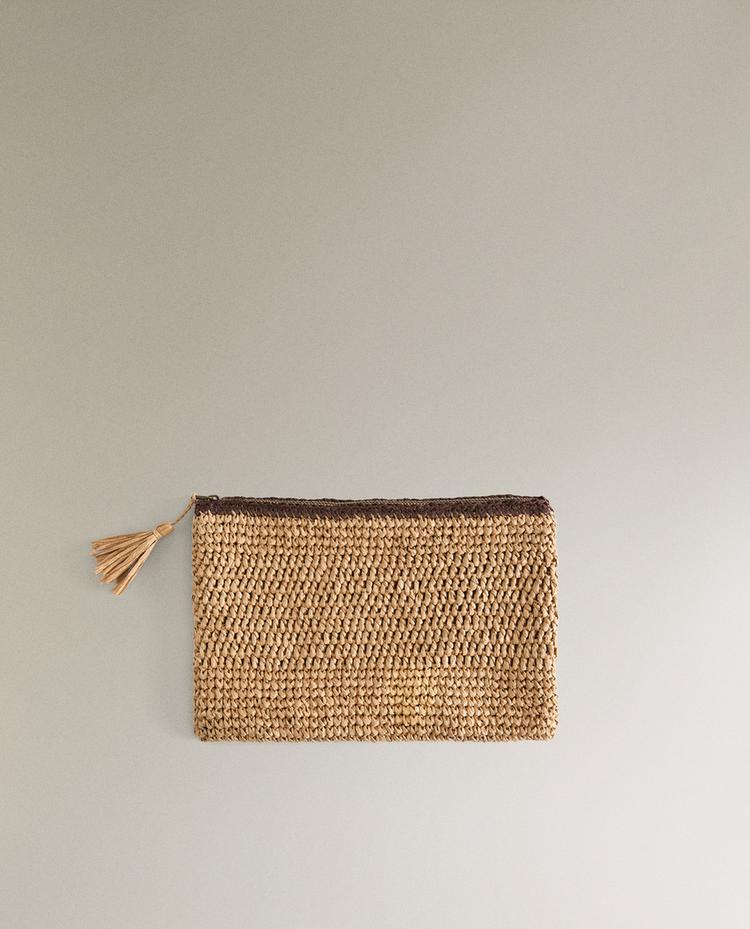PAPER WASH BAG WITH TRIM DETAIL 12.90 BHDNATURAL |4516/500/111Woven paper clutch-style handbag with contrast trim. Zip closure with tassel. Complete your look with the matching tote bag.HeightWidthDepth20 cm28.50 cm2 cm12.90 BHDEnter quantity of units to purchase Quantity updated to 1 units Add 12.90 BHD