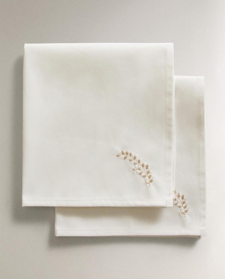 PLANT EMBROIDERY SATEEN NAPKIN (PACK OF 2) PACK OF 211.90 BHDECRU|2290/022/712Napkin made of cotton sateen with embroidered plant motifs. Sold in packs of 2.SizeNapkins(45 x 45 cm)11.90 BHDEnter quantity of units to purchase Quantity updated to 1 units Measurement guideAdd 11.90 BHD