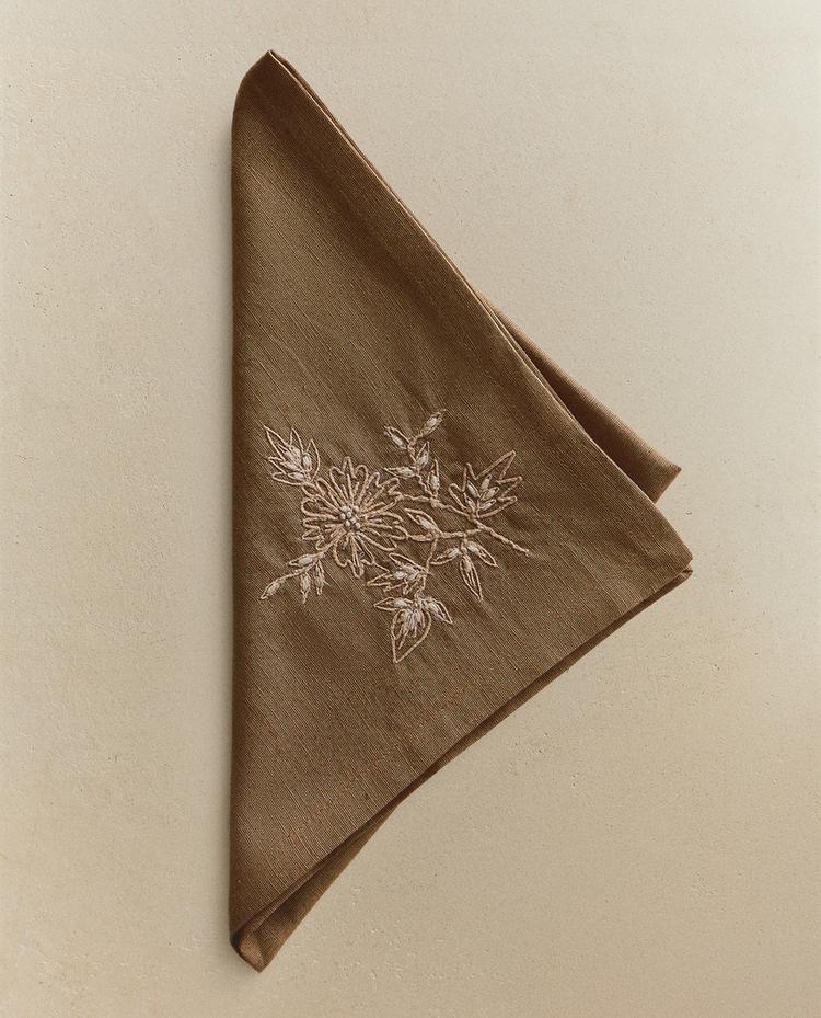 CONJUNTO DE GUARDANAPOS COM FLOR BORDADA (CONJUNTO DE 2)