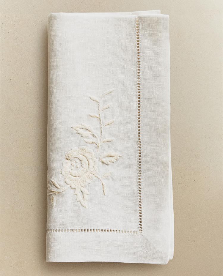PACK DE GUARDANAPOS DE LINHO COM BORDADO FLORAL E ELEMENTO DECORATIVO (PACK DE 2)