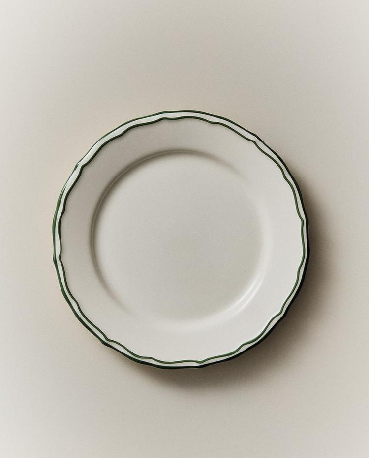 PRATO DE SOBREMESA DE CERÂMICA COM BORDA EM CONTRASTE