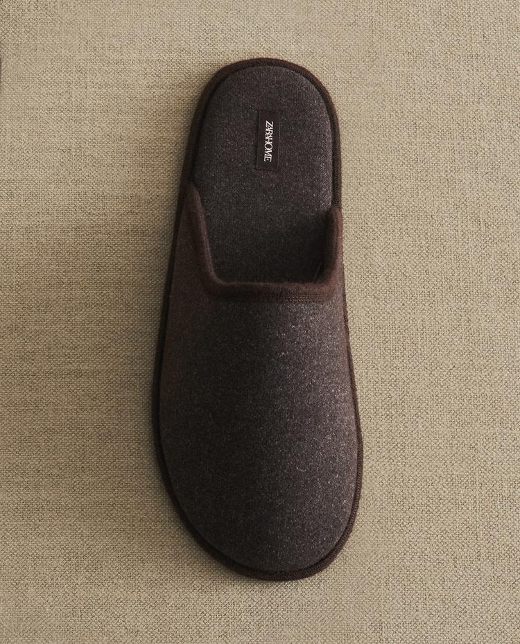 Chaussons ouverts à l’arrière chauds. Détail passepoil.