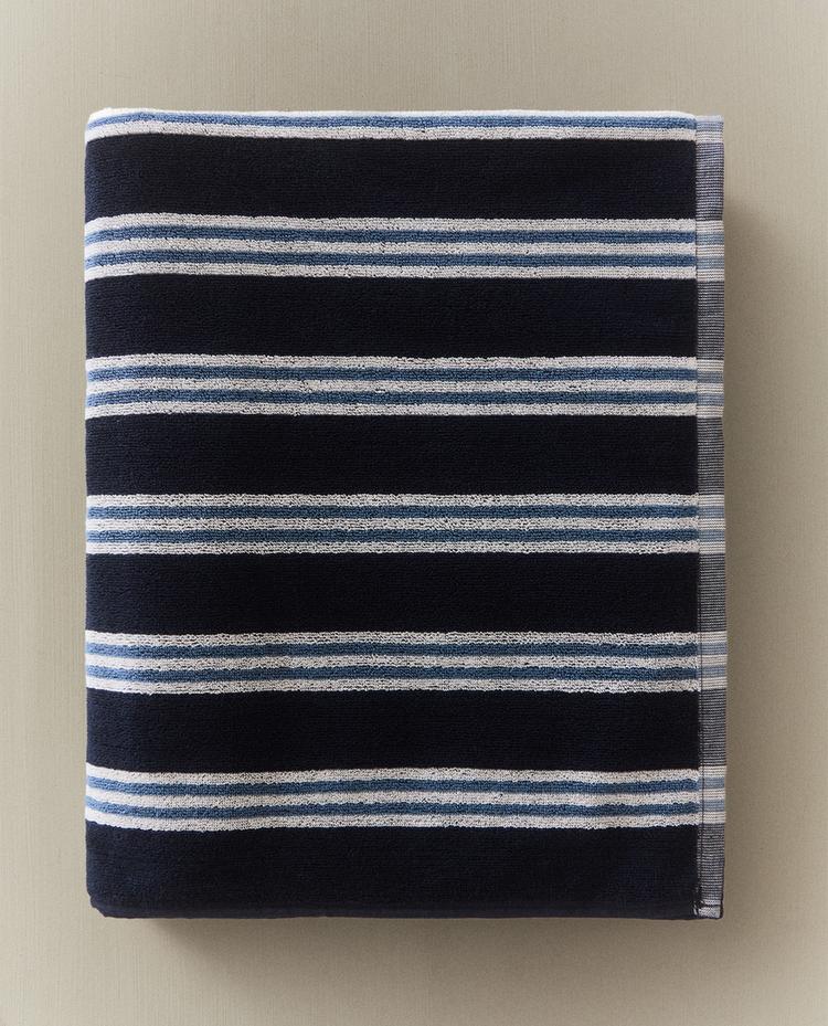 Serviette de bain en coton bouclette à motif rayures irrégulières.