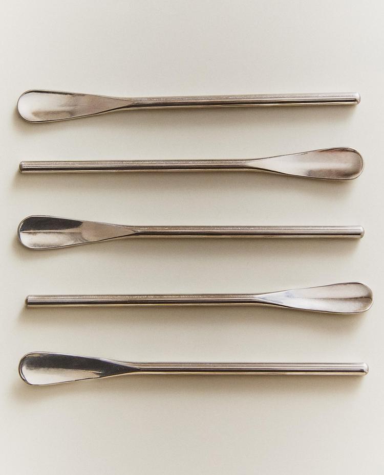 Petites cuillères à café en acier inoxydable avec manche fin et allongé, et finition brillante.