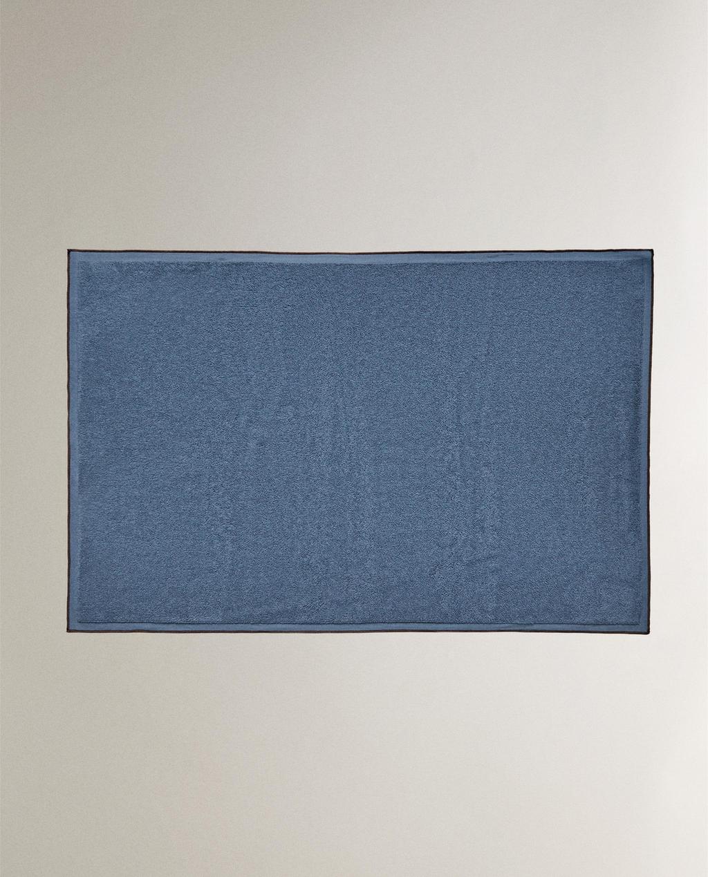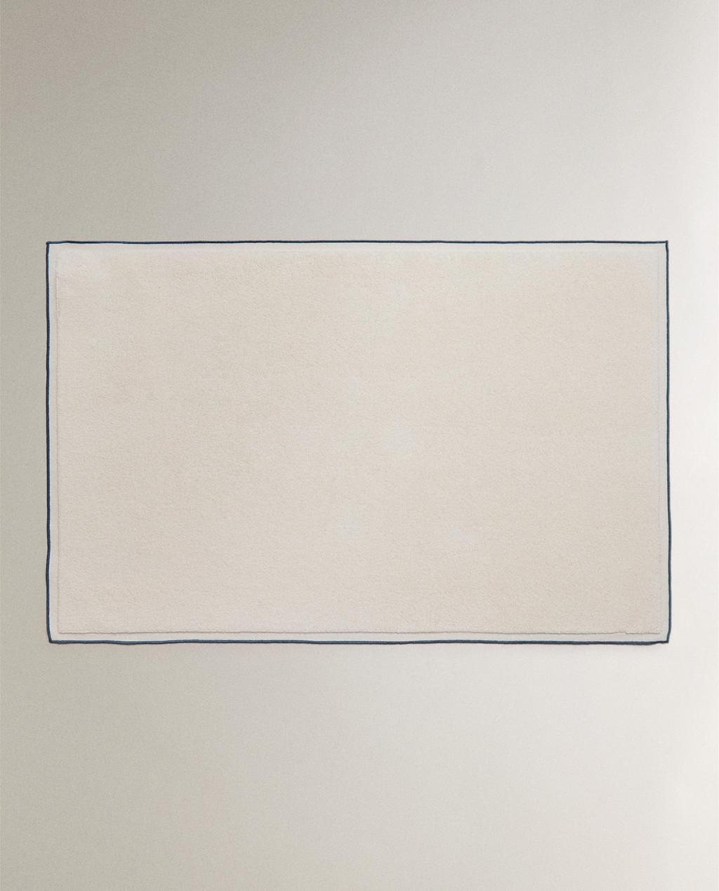 Tapis de bain en coton éponge, avec détail de surpiqûres de couleur contrastante.