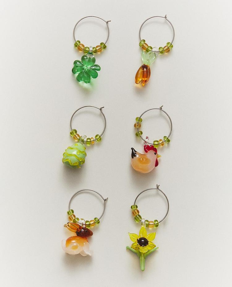 Stielglas-Markierer aus Glas mit von Ostern inspirierten Elementformen.