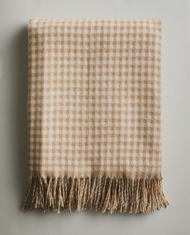 Weiche Decke mit Karomuster. Erhältlich in zwei Größen: Die kleine Größe hat lange Fransen und kann als dekorative Sofa-Decke verwendet werden, während die große Größe kurze Fransen hat und besser als Bett-Decke geeignet ist.