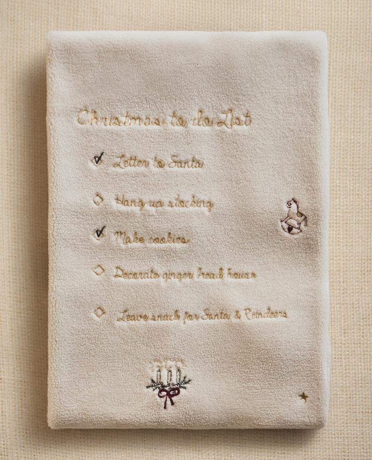Manta polar para bebé reversible, con diseño de lista de tareas navideña por un lado y estampado a cuadros por el otro.