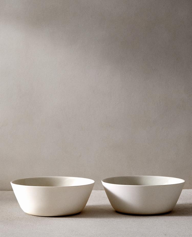 Formas puras, líneas sencillas y una paleta neutra con acabados mates y brillantes en contraste crean una colección de vajilla, que celebra el minimalismo a la vez que invita al juego y al movimiento. Apila y combina piezas de formas diferentes para crear ambientes únicos. Esta vajilla está diseñada en exclusiva para Zara Home por Serax.