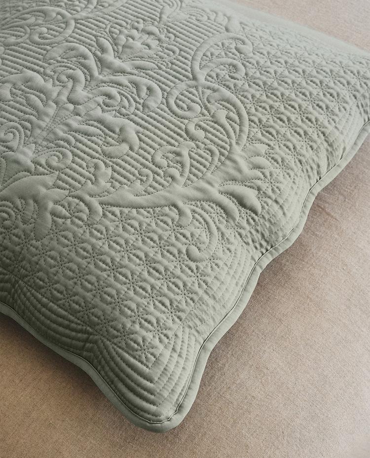 Funda de cojín de edredón acolchado con destalle de relieve, acabado con brillo y tacto suave.