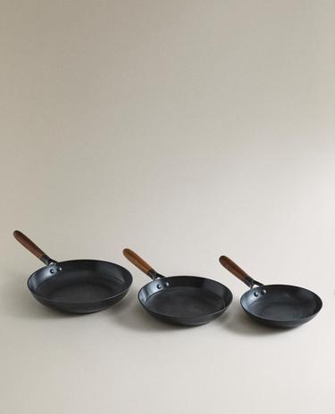 Sartén elaborada en hierro con mango de madera de acacia. Compatible con cocinas de gas, eléctricas, inducción, vitro y halógenas.