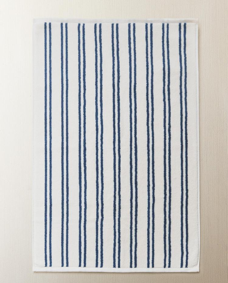 Bademåtte i bomuldsfrotté med et kontrastfarvet dobbelt stribedesign.