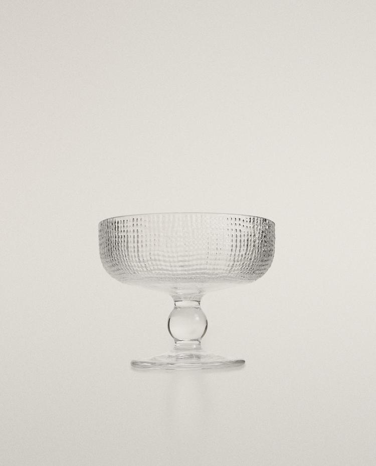 GLASS DESSERT CUP WITH RAISED DESIGN 39 DKKTRANSPARENT|6266/412/990Dessert cup made of transparent glass with an all-over raised design.Capacity: 250 mlHeightWidthDepth9.90 cm12 cm12 cm39 DKKEnter quantity of units to purchase Quantity updated to 1 units Measurement guideAdd 39 DKK