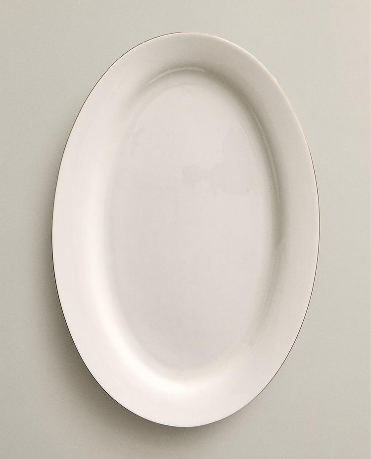 RIMMED BONE CHINA OVAL SERVING DISH
