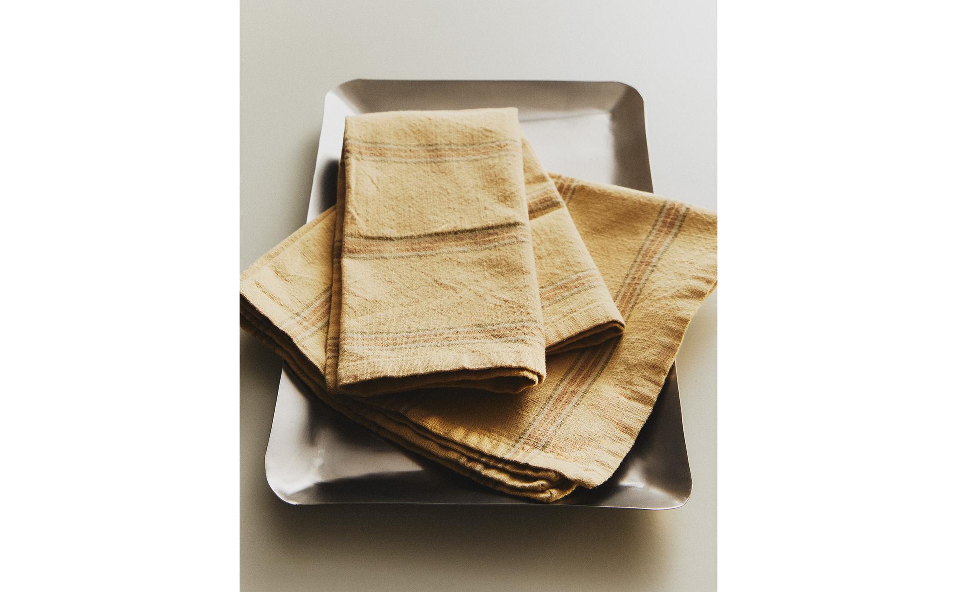 هل تعلم أن الاستمتاع بوجبتك يبدأ من جمال المكان؟ إنها حقيقة بسيطة، لكنها عميقة التأثير. لحظات الطعام فرصة ذهبية لتهدئة الروح وتغذية الحواس. نحن في زارا هوم نؤمن بأن الارتقاء بأي قائمة طعام شهية، مهما كانت بسيطة، يتطلب تهيئة مساحة ساحرة تُلامس الروح وتُشجع على الانغماس التام في كل لقمة وكل حديث ولهذا السبب بالذات، وبشكل استثنائي، قمنا في زارا هوم بتنسيق مجموعة فريدة ومتكاملة من المنسوجات. كل قطعة فيها اختيرت بعناية فائقة وتصميم متقن، لتكون أكثر من مجرد إكسسوار؛ إنها دعوة للجمال. اكتشف كيف يمكن لمائدتك أن تتألق بلمسة جمالية آسرة لم يسبق لها مثيل، تضفي الرقي على فطورك الصباحي الهادئ، وتزيد من دفء غدائك العائلي المبهج، وتُضفي سحرًا خاصًا على عشائك الفاخر. هذه المجموعة من مفارش المائدة مصممة لتكون رفيقتك في روتينك اليومي، ولتُحوّل أروع مناسباتك الخاصة إلى لحظات خالدة محفورة في الذاكرة. اجعل كل وجبة احتفالًا للحواس، ودع مائدتك تروي قصة أناقة لا تنتهي.