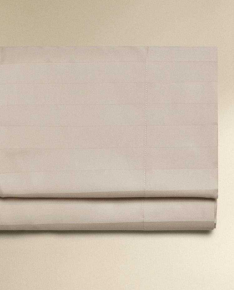 Plain duvet cover in 500 thread count cotton sateen with a striped design.