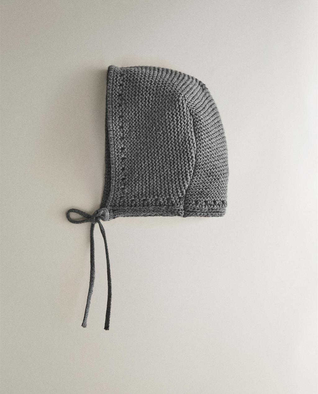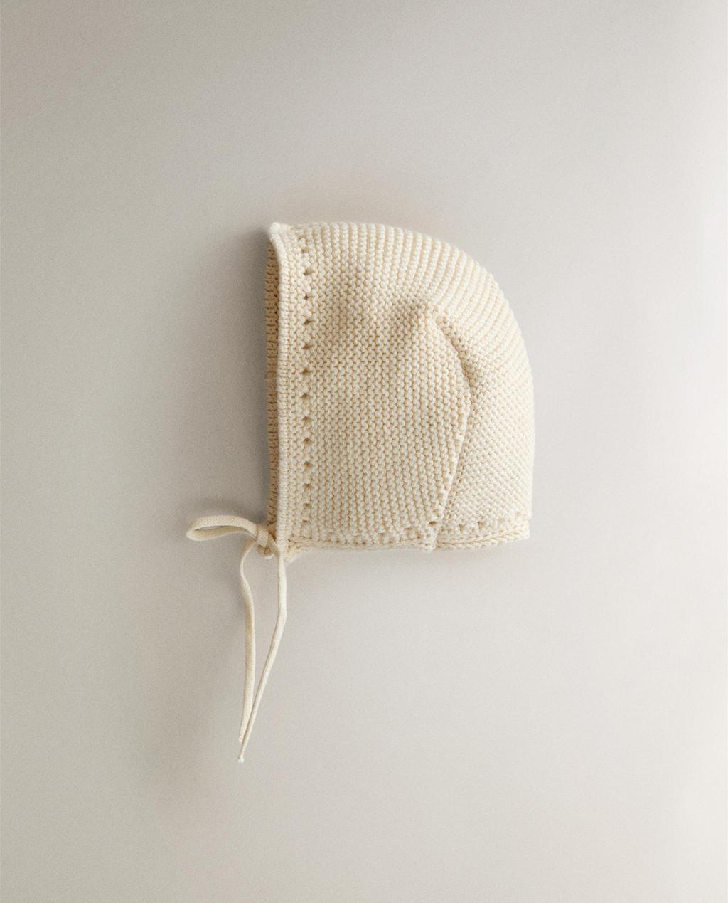 Capota per a nadó de punt amb cordons per ajustar i disseny llis.